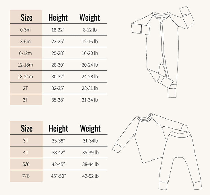 At SUNNY & KO, we prioritize your child’s safety and comfort in every detail, including our carefully crafted sizing. Our pajamas are designed to be snug-fitting, in accordance with the CPSC's safety standards, which help protect children by reducing flammability without the need for harmful chemicals or flame retardants. In addition, we’ve added extra length to our pajamas, allowing them to grow with your child for a longer, more comfortable fit. Available in sizes ranging from newborn to 7/8, our pajamas provide a cozy, safe fit for babies and kids as they grow.